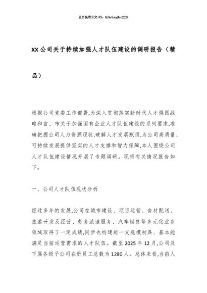 【七哥公文】2025年:XX公司关于持续加强人才队伍建设的调研报告(精品)_副本+更多免费公文+VX:QiGeGongWen2024