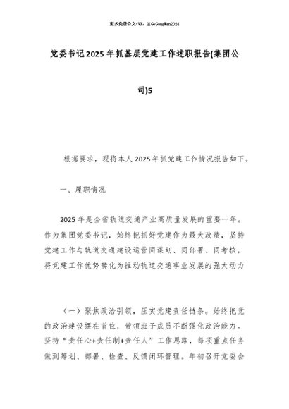 【七哥公文】2025年:党委书记2025年抓基层党建工作述职报告(集团公司)5_副本+更多免费公文+VX:QiGeGongWen2024