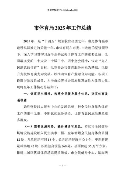 / 【七哥公文】2025年:市体育局2025年工作总结+更多免费公文+VX:QiGeGongWen2024