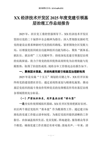 【七哥公文】2025年:XX经济技术开发区2025年度党建引领基层治理工作总结报告+更多免费公文+VX:QiGeGongWen2024