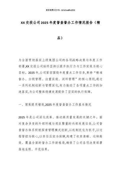 【七哥公文】2025年:XX交投公司2025年度督查督办工作情况报告(精品)_副本+更多免费公文+VX:QiGeGongWen2024
