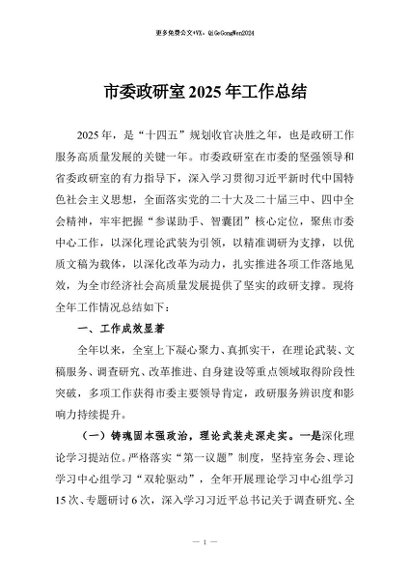 / 【七哥公文】2025年:市委政研室2025年工作总结+更多免费公文+VX:QiGeGongWen2024