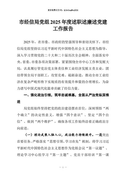 / 【七哥公文】2025年:市经信局党组2025年度述职述廉述党建工作报告+更多免费公文+VX:QiGeGongWen2024