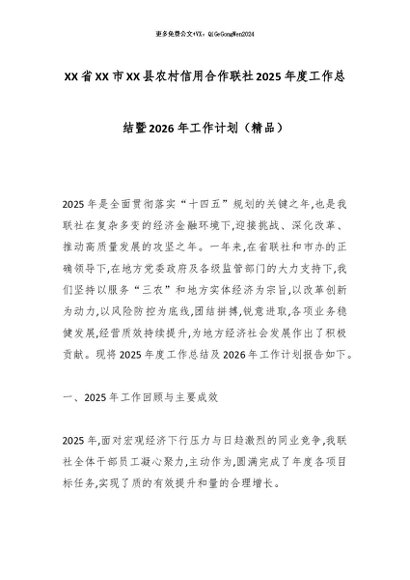【七哥公文】2025年:XX省XX市XX县农村信用合作联社2025年度工作总结暨2026年工作计划(精品)_副本+更多免费公文+VX:QiGeGongWen2024