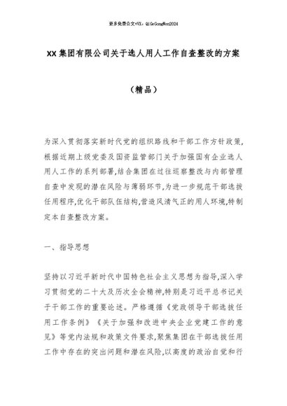【七哥公文】2025年:XX集团有限公司关于选人用人工作自查整改的方案(精品)_副本+更多免费公文+VX:QiGeGongWen2024