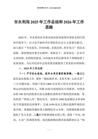 / 【七哥公文】2025年:市水利局2025年工作总结和2026年工作思路+更多免费公文+VX:QiGeGongWen2024