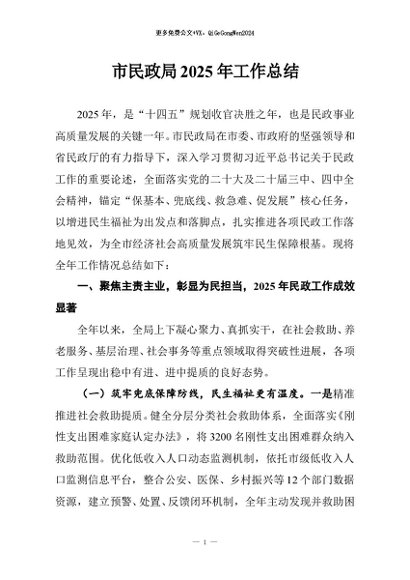 / 【七哥公文】2025年:市民政局2025年工作总结+更多免费公文+VX:QiGeGongWen2024