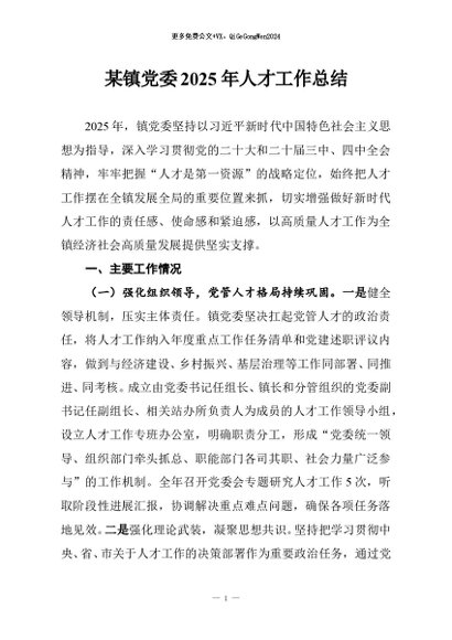 / 【七哥公文】2025年:某镇党委2025年人才工作总结+更多免费公文+VX:QiGeGongWen2024