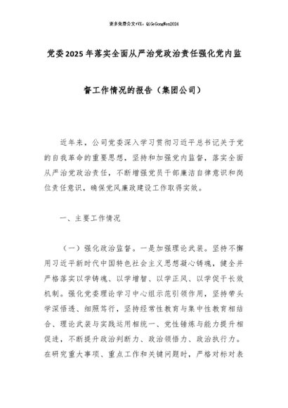 【七哥公文】2025年:党委2025年落实全面从严治党政治责任强化党内监督工作情况的报告(集团公司)_副本+更多免费公文+VX:QiGeGongWen2024