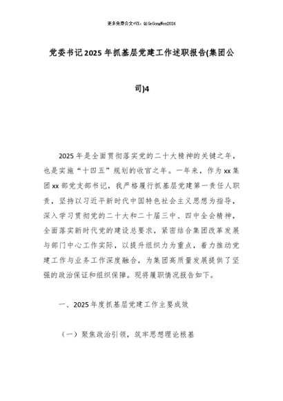 【七哥公文】2025年:党委书记2025年抓基层党建工作述职报告(集团公司)4_副本+更多免费公文+VX:QiGeGongWen2024