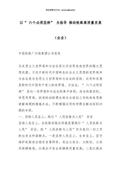 【七哥公文】2025年:以“ 六个必须坚持” 为指导 推动铁路高质量发展(企业)_副本+更多免费公文+VX:QiGeGongWen2024