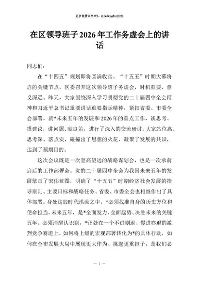 / 【七哥公文】2025年:在区领导班子2026年工作务虚会上的讲话+更多免费公文+VX:QiGeGongWen2024
