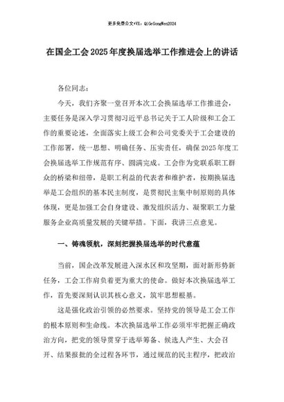 【七哥公文】2025年:在国企工会2025年度换届选举工作推进会上的讲话_副本+更多免费公文+VX:QiGeGongWen2024