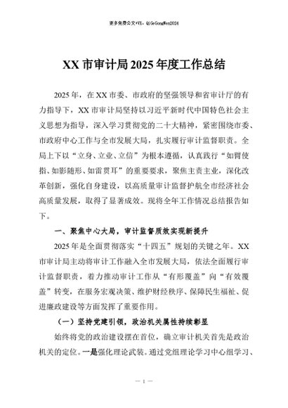 / 【七哥公文】2025年:XX市审计局2025年度工作总结+更多免费公文+VX:QiGeGongWen2024