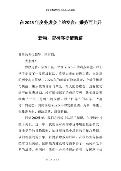 【七哥公文】2025年:在2025年度务虚会上的发言:乘势而上开新局,奋楫笃行谱新篇+更多免费公文+VX:QiGeGongWen2024
