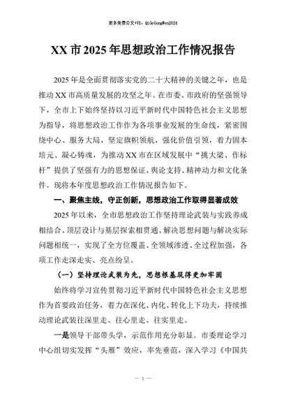 / 【七哥公文】2025年:XX市2025年思想政治工作情况报告+更多免费公文+VX:QiGeGongWen2024