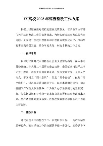 / 【七哥公文】2025年:XX高校2025年巡查整改工作方案+更多免费公文+VX:QiGeGongWen2024