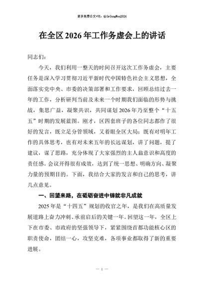 / 【七哥公文】2025年:在全区2026年工作务虚会上的讲话+更多免费公文+VX:QiGeGongWen2024