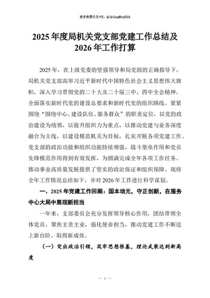 【七哥公文】2025年:2025年度局机关党支部党建工作总结及2026年工作打算+更多免费公文+VX:QiGeGongWen2024