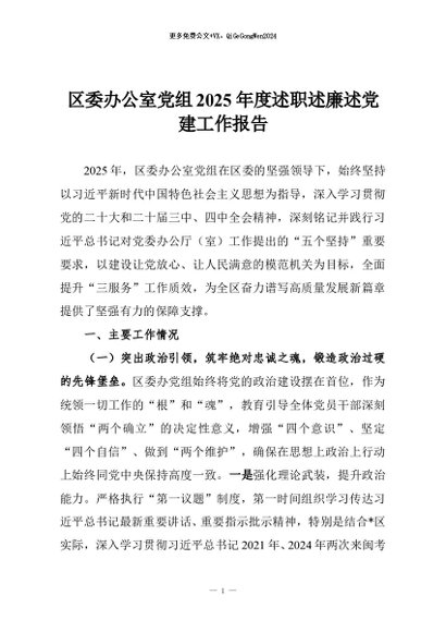 / 【七哥公文】2025年:区委办公室党组2025年度述职述廉述党建工作报告+更多免费公文+VX:QiGeGongWen2024