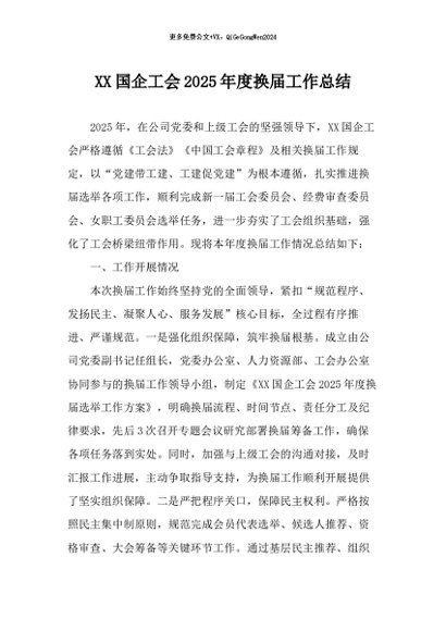 / 【七哥公文】2025年:XX国企工会2025年度换届工作总结_副本+更多免费公文+VX:QiGeGongWen2024