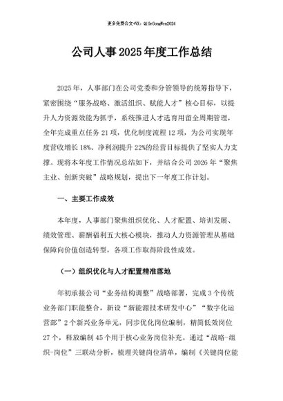 / 【七哥公文】2025年:公司人事2025年度工作总结+更多免费公文+VX:QiGeGongWen2024