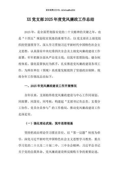 / 【七哥公文】2025年:XX党支部2025年度党风廉政工作总结+更多免费公文+VX:QiGeGongWen2024