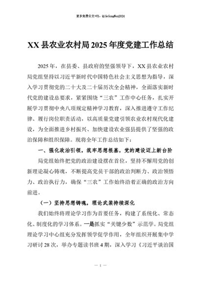 / 【七哥公文】2025年:XX县农业农村局2025年度党建工作总结+更多免费公文+VX:QiGeGongWen2024