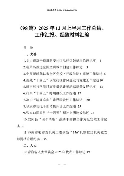 【七哥公文】2025年:(98篇)2025年12月上半月工作总结、工作汇报、经验材料汇编+更多免费公文+VX:QiGeGongWen2024