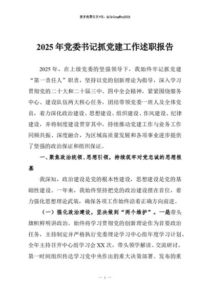 / 【七哥公文】2025年:2025年党委书记抓党建工作述职报告+更多免费公文+VX:QiGeGongWen2024