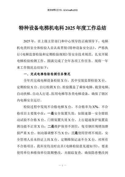 / 【七哥公文】2025年:特种设备电梯机电科2025年度工作总结+更多免费公文+VX:QiGeGongWen2024