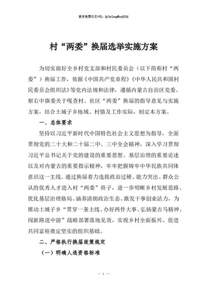 / 【七哥公文】2025年:村“两委”换届选举实施方案+更多免费公文+VX:QiGeGongWen2024