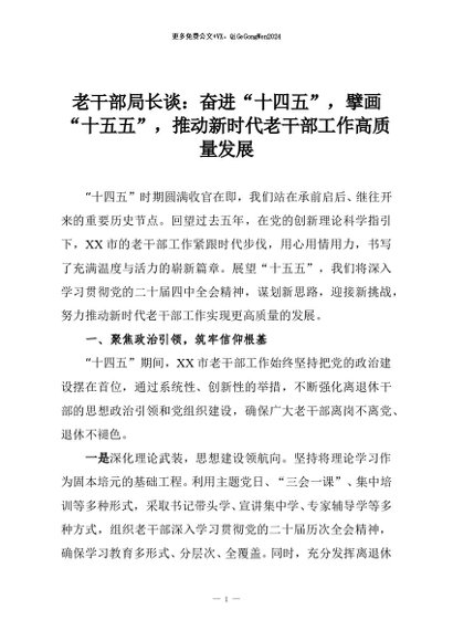 【七哥公文】2025年:老干部局长谈:奋进“十四五”,擘画“十五五”,推动新时代老干部工作高质量发展+更多免费公文+VX:QiGeGongWen2024