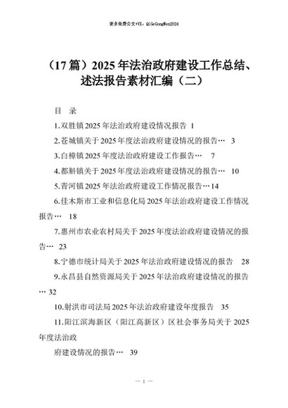 【七哥公文】2025年:(17篇)2025年法治政府建设工作总结、述法报告素材汇编(二)+更多免费公文+VX:QiGeGongWen2024