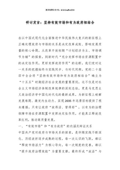 / 【七哥公文】2025年:研讨发言:坚持有效市场和有为政府相结合_副本+更多免费公文+VX:QiGeGongWen2024