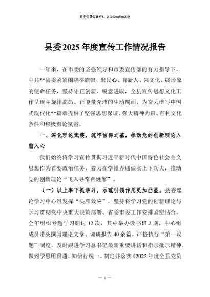 / 【七哥公文】2025年:县委2025年度宣传工作情况报告+更多免费公文+VX:QiGeGongWen2024