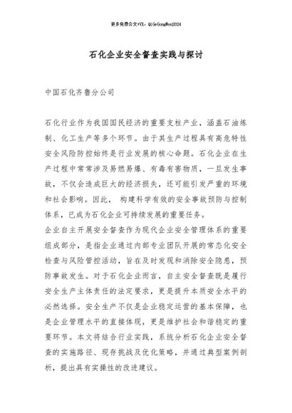 / 【七哥公文】2025年:石化企业安全督查实践与探讨_副本+更多免费公文+VX:QiGeGongWen2024