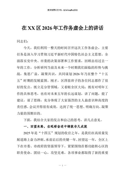 / 【七哥公文】2025年:在XX区2026年工作务虚会上的讲话+更多免费公文+VX:QiGeGongWen2024