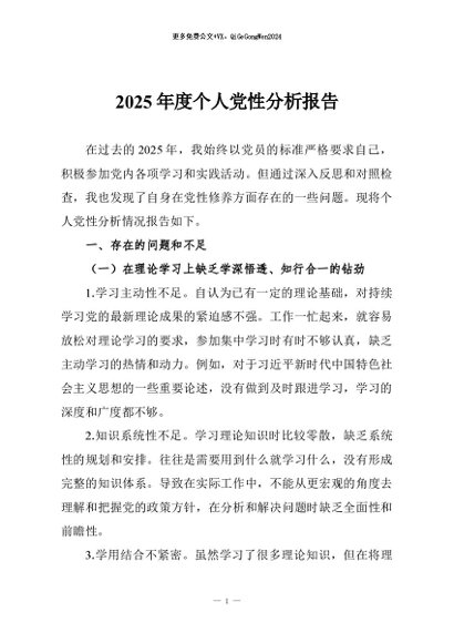 / 【七哥公文】2025年:2025年度个人党性分析报告+更多免费公文+VX:QiGeGongWen2024