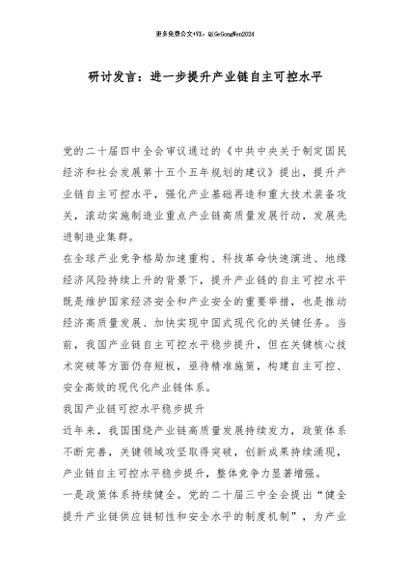 / 【七哥公文】2025年:研讨发言:进一步提升产业链自主可控水平_副本+更多免费公文+VX:QiGeGongWen2024