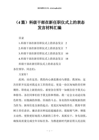 【七哥公文】2025年:(4篇)科级干部在新任职仪式上的表态发言材料汇编+更多免费公文+VX:QiGeGongWen2024