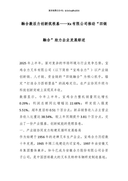 【七哥公文】2025年:融合激活力创新筑根基——Xx有限公司推动“四链融合”助力企业发展综述_副本+更多免费公文+VX:QiGeGongWen2024