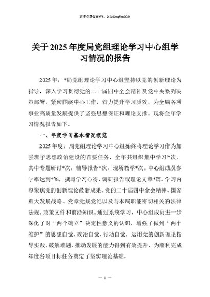 / 【七哥公文】2025年:关于2025年度局党组理论学习中心组学习情况的报告+更多免费公文+VX:QiGeGongWen2024