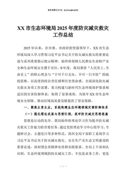 / 【七哥公文】2025年:XX市生态环境局2025年度防灾减灾救灾工作总结+更多免费公文+VX:QiGeGongWen2024