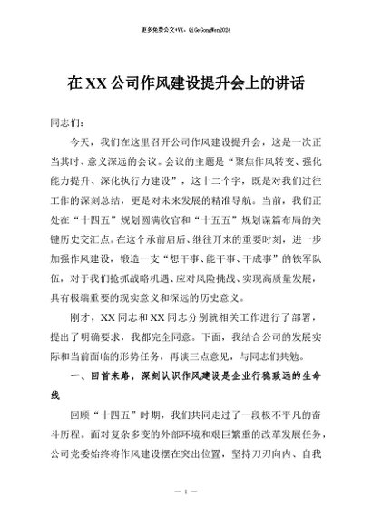 / 【七哥公文】2025年:在XX公司作风建设提升会上的讲话+更多免费公文+VX:QiGeGongWen2024