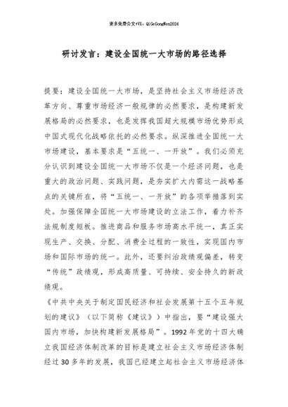 / 【七哥公文】2025年:研讨发言:建设全国统一大市场的路径选择_副本+更多免费公文+VX:QiGeGongWen2024