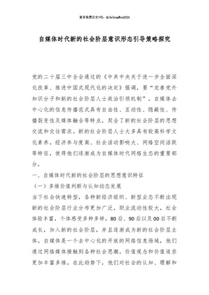 【七哥公文】2025年:自媒体时代新的社会阶层意识形态引导策略探究_副本+更多免费公文+VX:QiGeGongWen2024