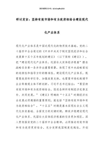【七哥公文】2025年:研讨发言:坚持有效市场和有为政府相结合建设现代化产业体系_副本+更多免费公文+VX:QiGeGongWen2024