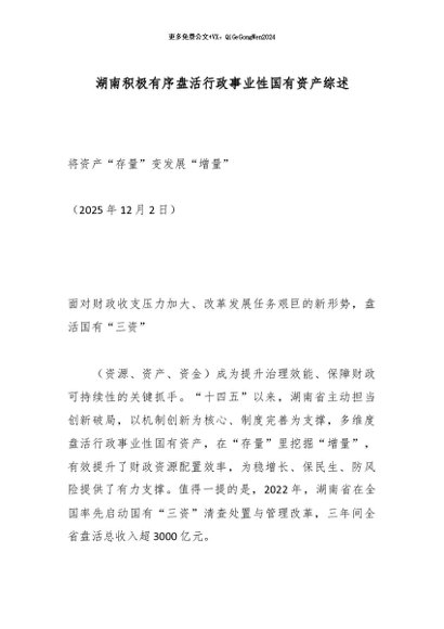 / 【七哥公文】2025年:湖南积极有序盘活行政事业性国有资产综述_副本+更多免费公文+VX:QiGeGongWen2024