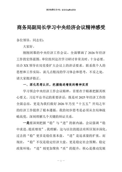 / 【七哥公文】2025年:商务局副局长学习中央经济会议精神感受+更多免费公文+VX:QiGeGongWen2024